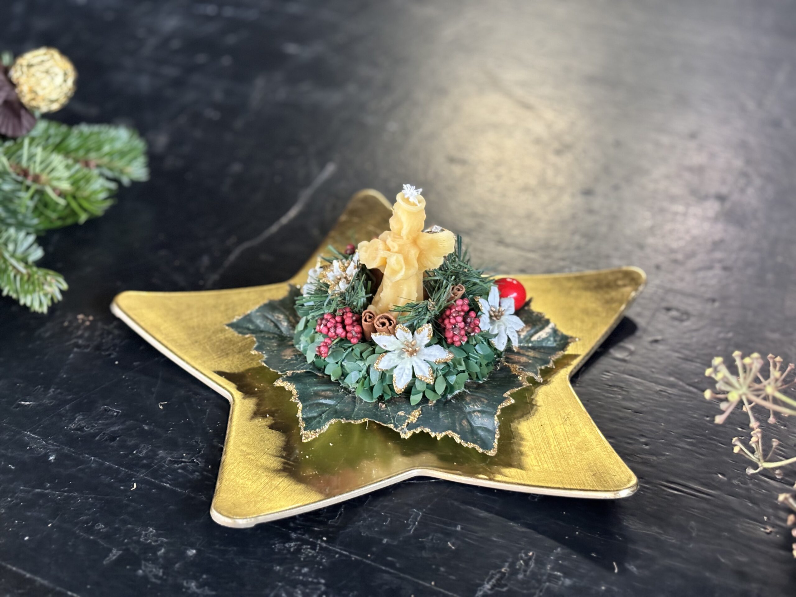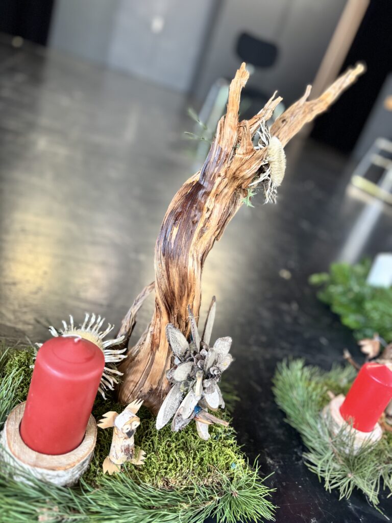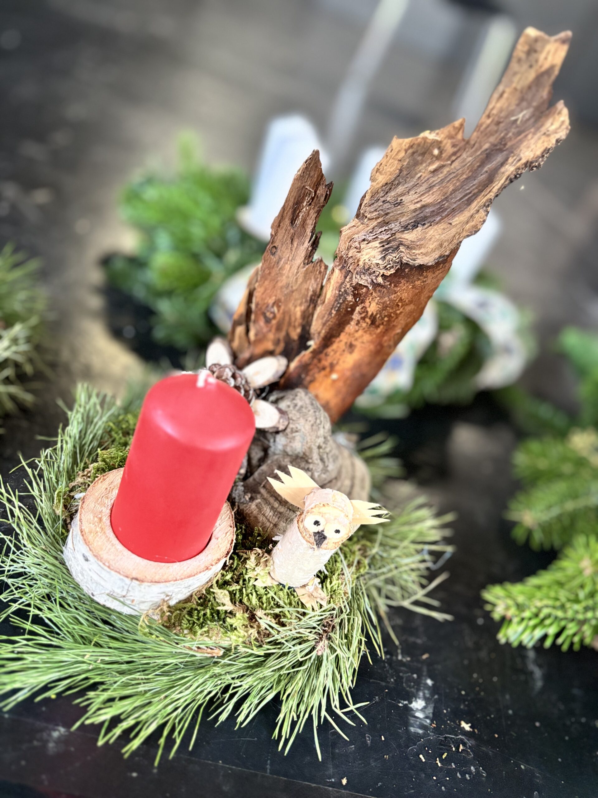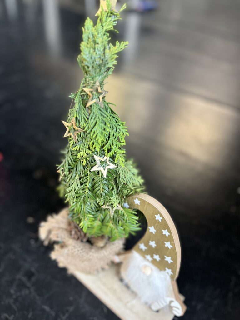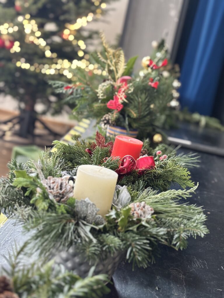 Die wunderschönen 40 Weihnachtsdekorationen in Form von Gestecken, die vor der Veranstaltung am Bühnenrad besichtigt und reserviert werden konnten, wurden als Spende angeboten, fanden reißenden Absatz und waren am Ende schnell vergriffen.