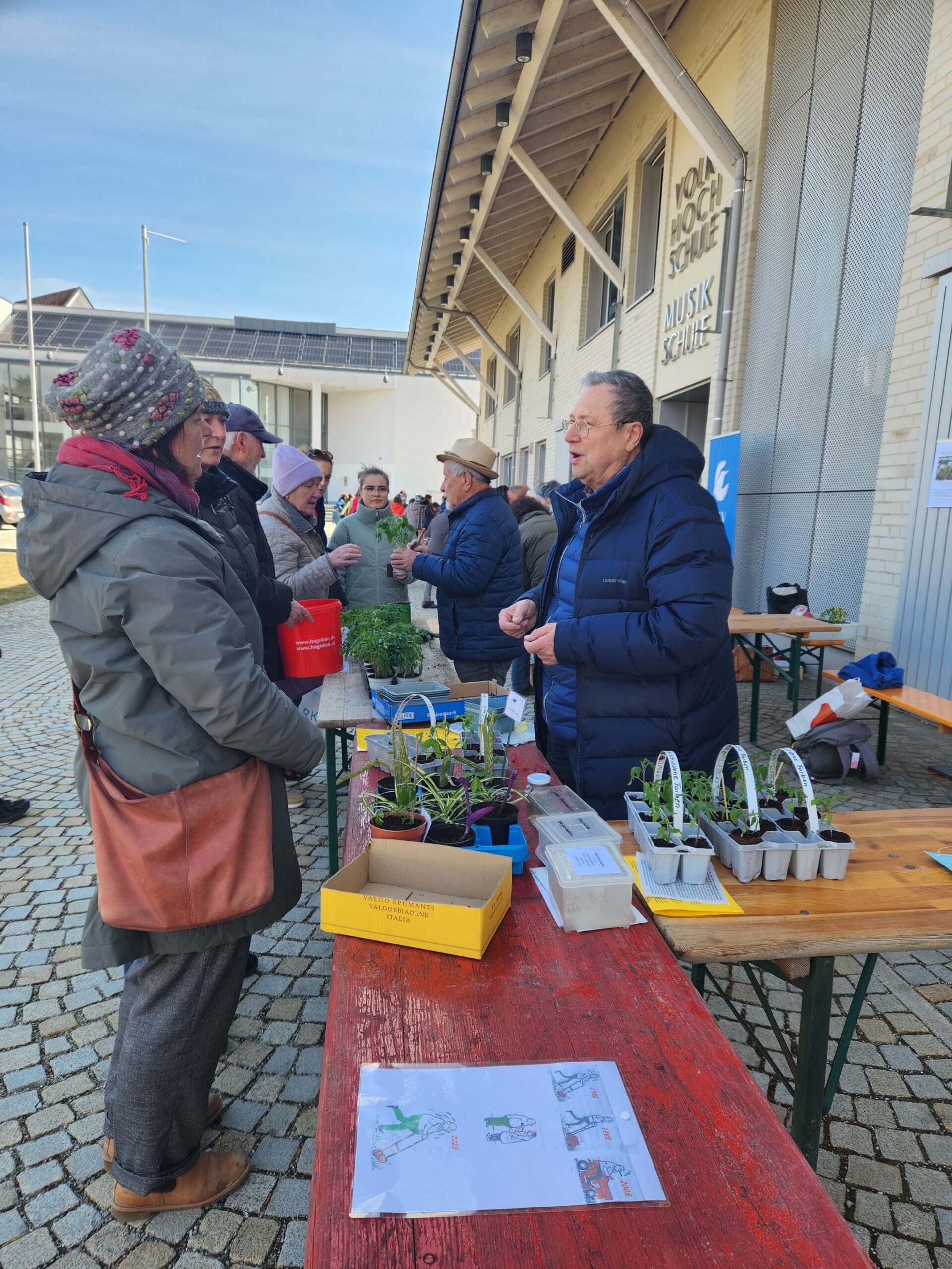 Natürlich waren die Gartenfreunde mit Klaus Steckert und Toni Hötzinger dieses Jahr wieder auf der Pflanzenbörse am VHS Stadl vertreten mit zahlreichen selber gezüchteten Gewächsen. Eines der Fachgebiete: Tomaten – und das brachte Toni großen Andrang und den Spitznamen „Tomatenmann“ ein.