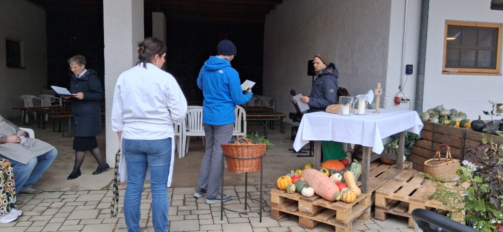 Ein herzliches Dankeschön an das Familiengottesdienst-Team Lyubov Bershtadt,T homas Glückmann als Messner und Silke Stanztl von der Mennonistischen Gemeinde München. Einen herzlichen Dank auch der Familie Habeker, dies es ermöglichte, dass auf dem Habeker Hof gemeinsam gefeiert werden durfte.